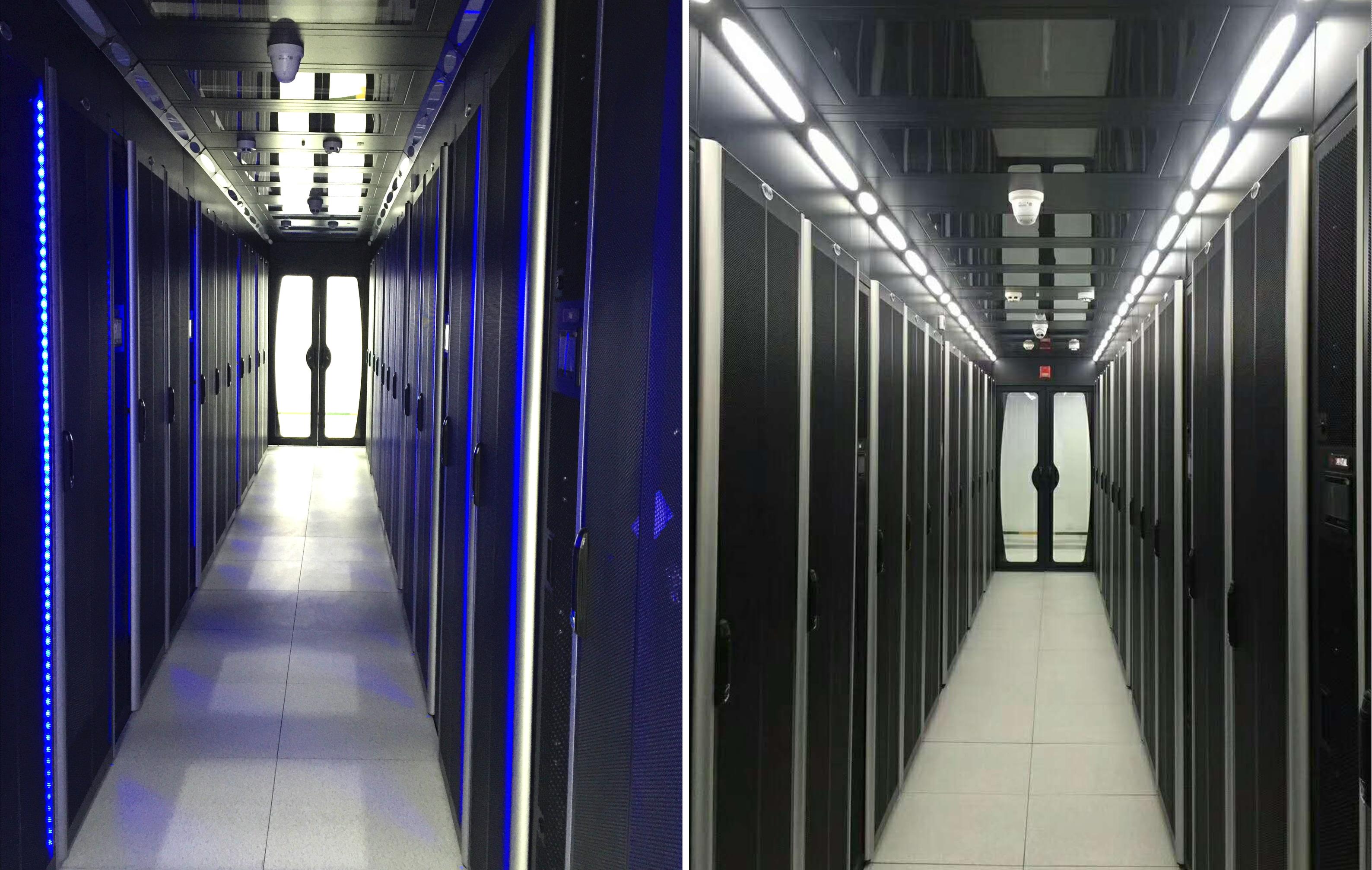 項(xiàng)目采用的模塊化數(shù)據(jù)中心解決方案集成了機(jī)柜系統(tǒng)、供配電系統(tǒng)、制冷系統(tǒng)、氣流遏制系統(tǒng)、綜合布線系統(tǒng)和運(yùn)維系統(tǒng)等子系統(tǒng)。微模塊頂部兩側(cè)配置照明單元,排列美觀,增加機(jī)房照度;天窗自動(dòng)復(fù)位系統(tǒng)接收到消防聯(lián)動(dòng)信號時(shí)自動(dòng)打開,實(shí)現(xiàn)一體化消防需求;機(jī)柜配置感溫狀態(tài)指示燈,直觀顯示柜內(nèi)溫度狀況;氣流遏制系統(tǒng)將冷熱空氣完全隔離,避免局部熱點(diǎn)問題,降低能耗;數(shù)據(jù)中心運(yùn)維系統(tǒng)可提供數(shù)據(jù)收集、分析、監(jiān)測、報(bào)警、運(yùn)維等功能,實(shí)現(xiàn)數(shù)據(jù)中心可視化、精細(xì)化管理;模塊化設(shè)計(jì)有效地提高了機(jī)房使用空間,還可幫助超算中心實(shí)現(xiàn)未來機(jī)房的靈活擴(kuò)容。