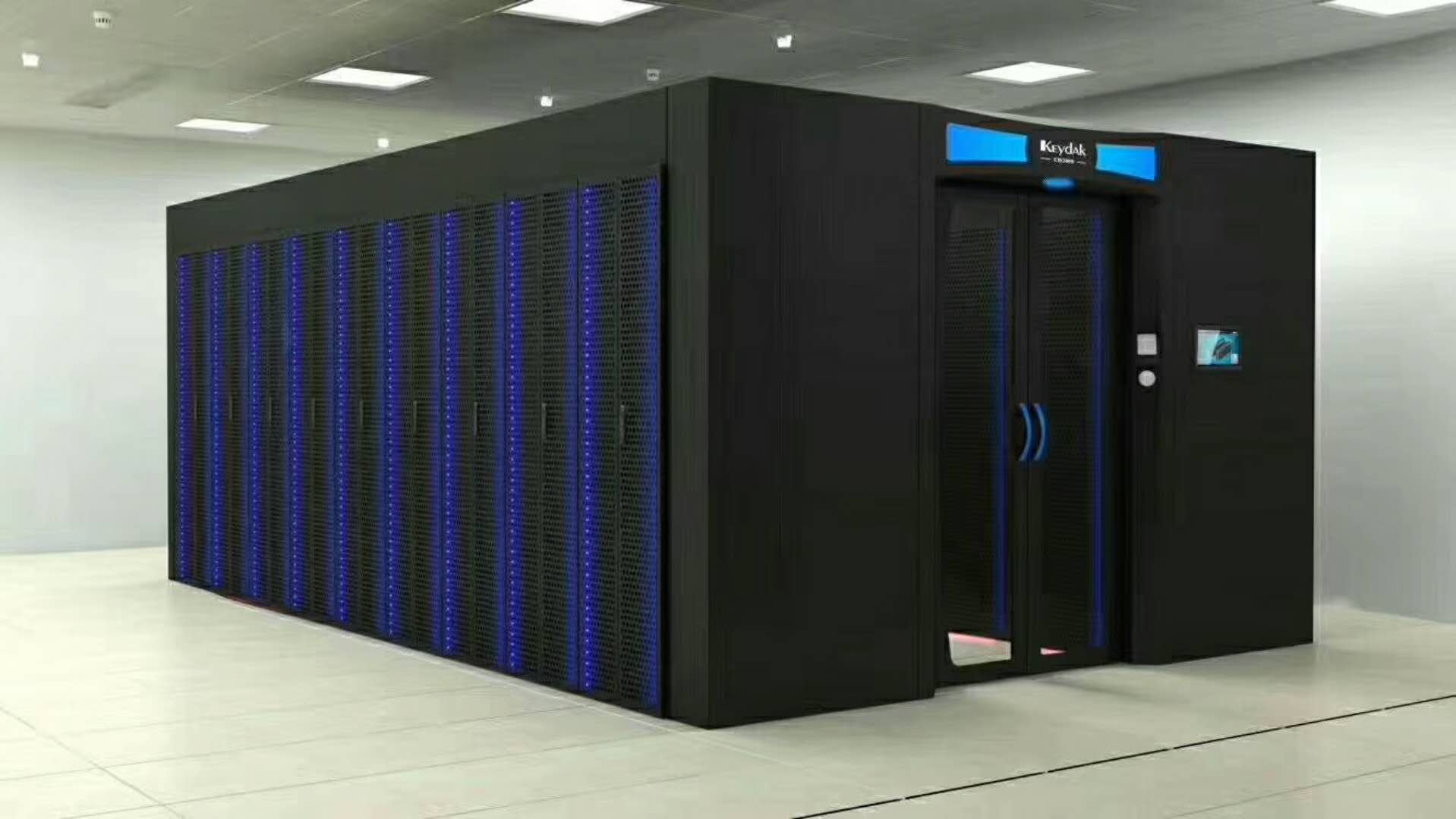 本項(xiàng)目共應(yīng)用了28套keydak(金盾)CD2000微模塊(包含714套ISR系列智能服務(wù)器機(jī)柜),配置在超算中心的4個(gè)機(jī)房內(nèi)。